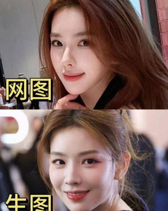 在精修图里,她的长相很和谐,胜在自然,现实中却有些微妙的不协调,嘴巴有些凸嘴和龅牙,鼻子也比精修图要塌,脸还是很美的,但跟她的精修图不像是一个人。