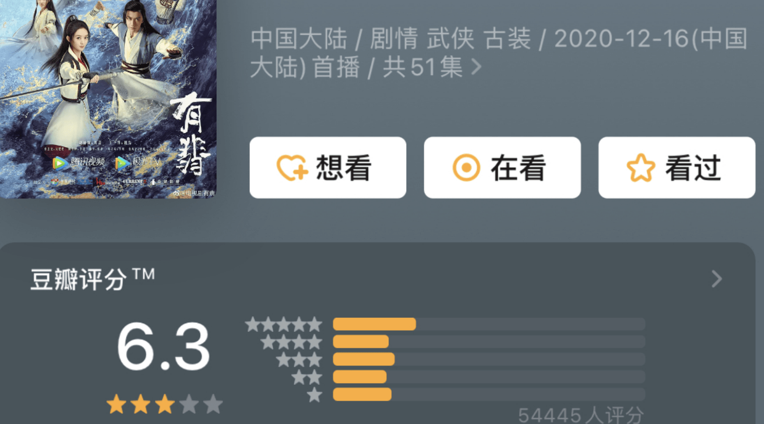 说起有翡,可以说是万众期待,毕竟这是人气女神、德艺双馨的赵丽颖老师,产后第一部电视剧。新金牌娱乐观察家看粉丝的评论,可以说是一众好评,可是今天豆瓣开分了,结果这部剧只有6分。