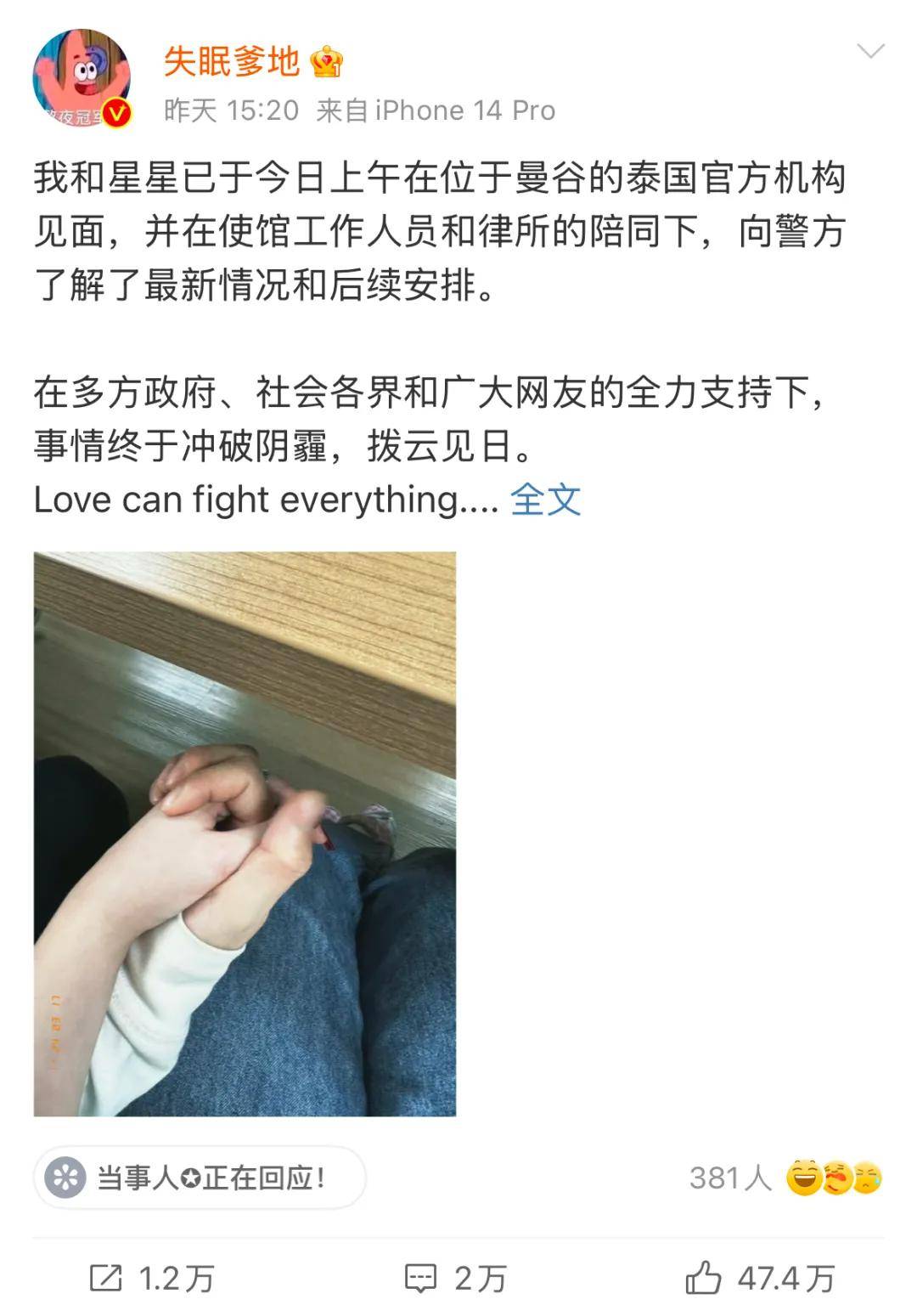 引发各界关注的“演员王星于泰缅边界失联事件”,已经接近尾声。据中国驻泰国大使馆消息,王星已于当地时间7日成功获救。而其女友嘉嘉(微博@失眠爹地)也于2025年1月8日15:20发博称,她与王星已于当日上午在位于曼谷的泰国官方机构见面。