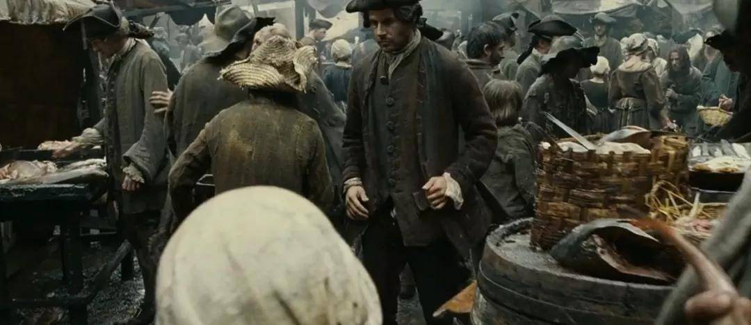 电影一开场,男主角格雷诺耶在鱼市降生,仅用几个镜头就让腥臭气味隔着银幕呼之欲出——阴冷的色调、拥挤的人群、粘腻的鱼摊……