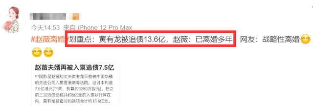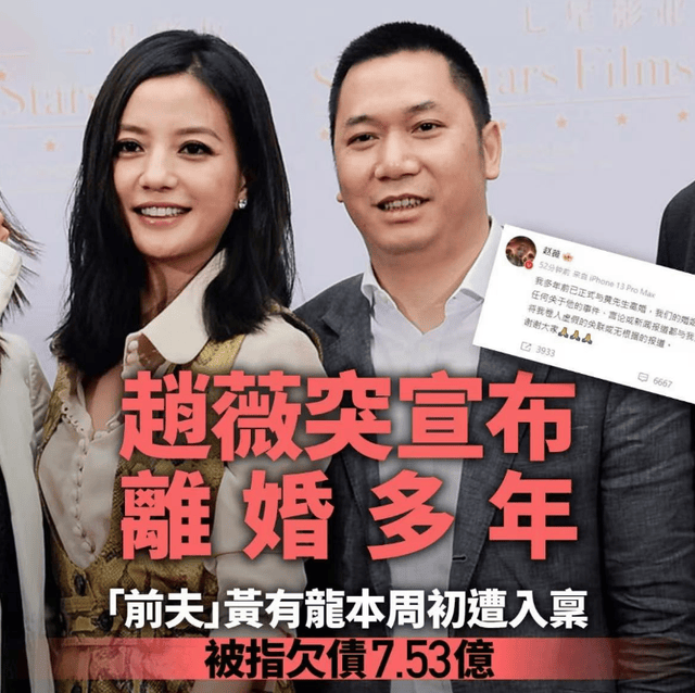 在黄有龙被讨债的节点,赵薇突然宣布与其已经离婚多年,仔细想想实在是耐人寻味,对此有不少网友猜疑,赵薇此举大概率是战略性离婚,只是为了与黄有龙的欠债撇清关系。