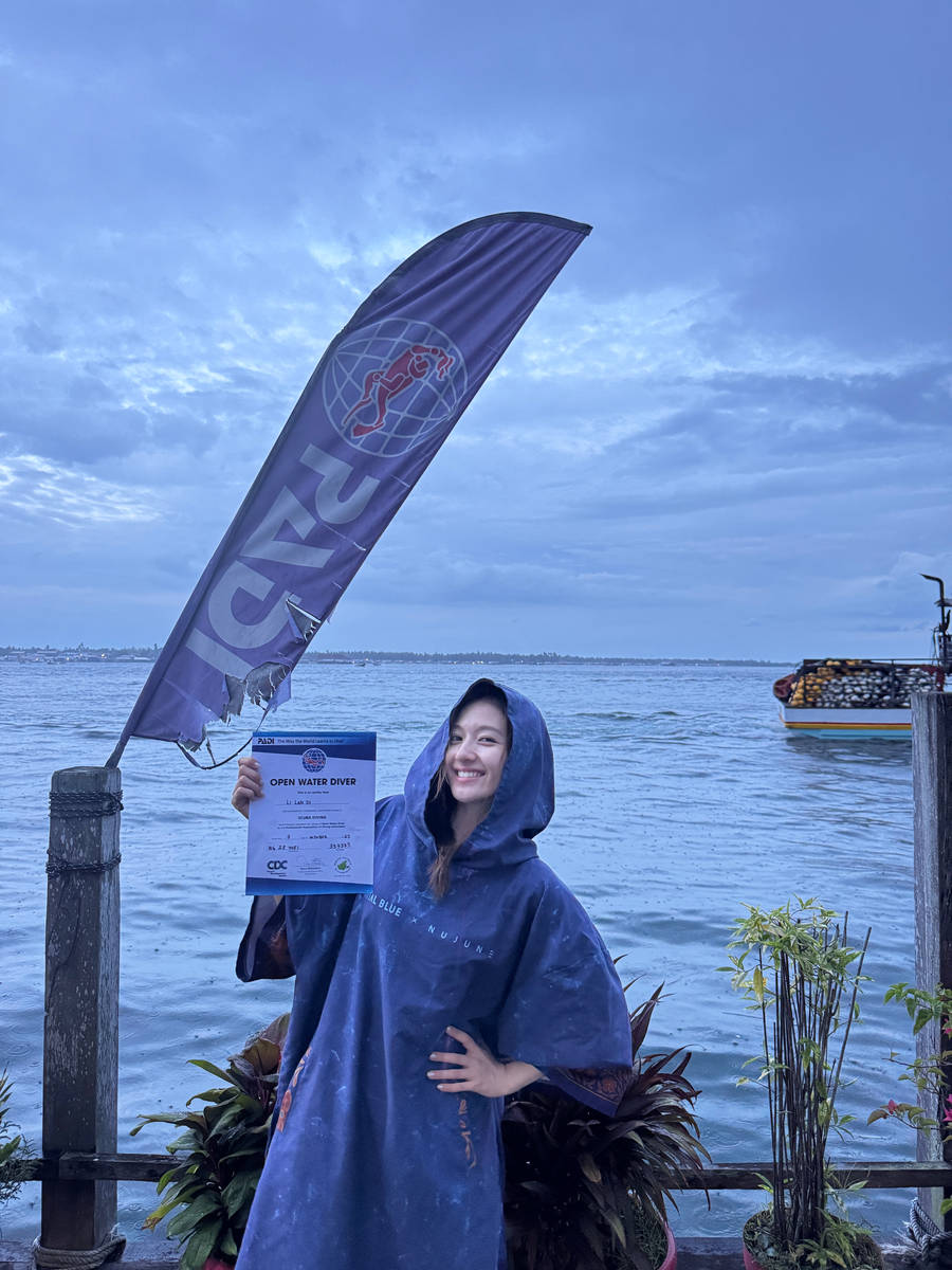 近日,李兰迪在社交平台分享的一组营业照悄然走红。镜头下,她身着蓝色潜水服静坐在漳州东山岛的海岸边,海风拂乱发丝,手中紧握的潜水证边角分明,未施粉黛的脸庞在阳光下透着透亮光泽,那份松弛自然的笑容,恰似秋日海风般清爽动人。这组打破常规明星营业套路的照片,不仅让网友见识到素颜的清丽,更藏着青年演员对职业的敬畏心。