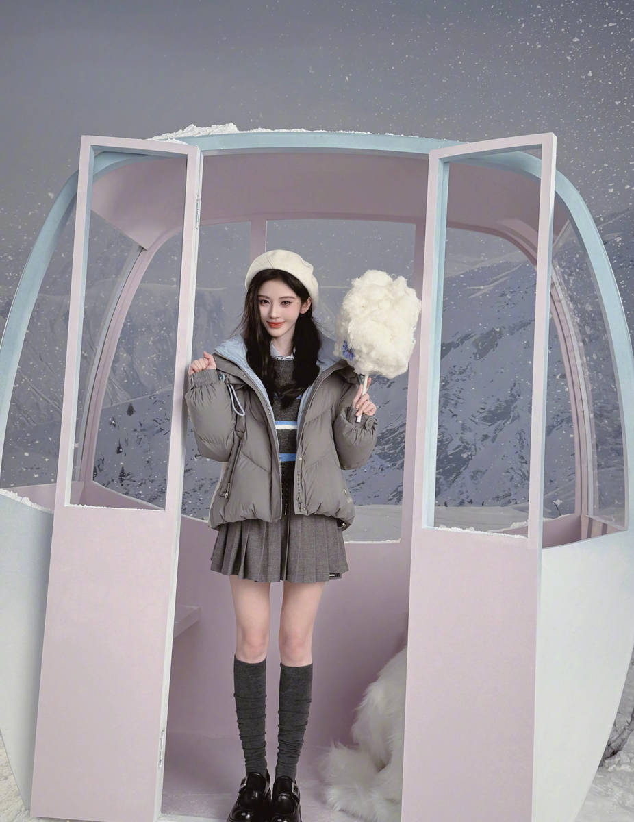 当黑色贝雷帽斜扣在波浪卷发上,裙摆随着脚步轻扫过膝头,鞠婧祎便在光影中完成了从舞台巨星到傲娇学妹的蜕变。这位以精致感著称的艺人,总能用穿搭打破风格边界,此次的超短裙造型更是将清纯与灵动揉成了独有的气质符号,让人一眼沦陷于她的青春气场。