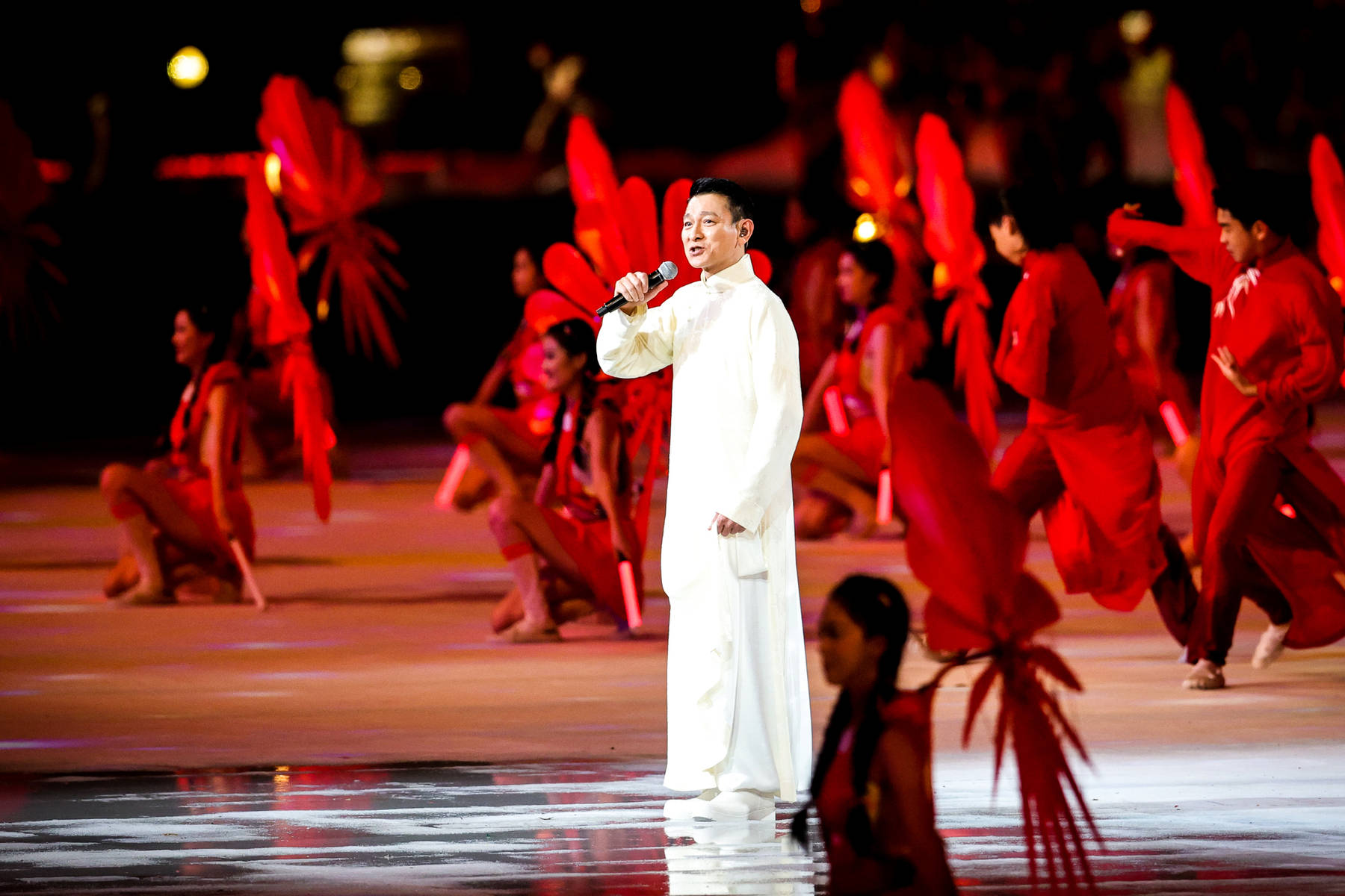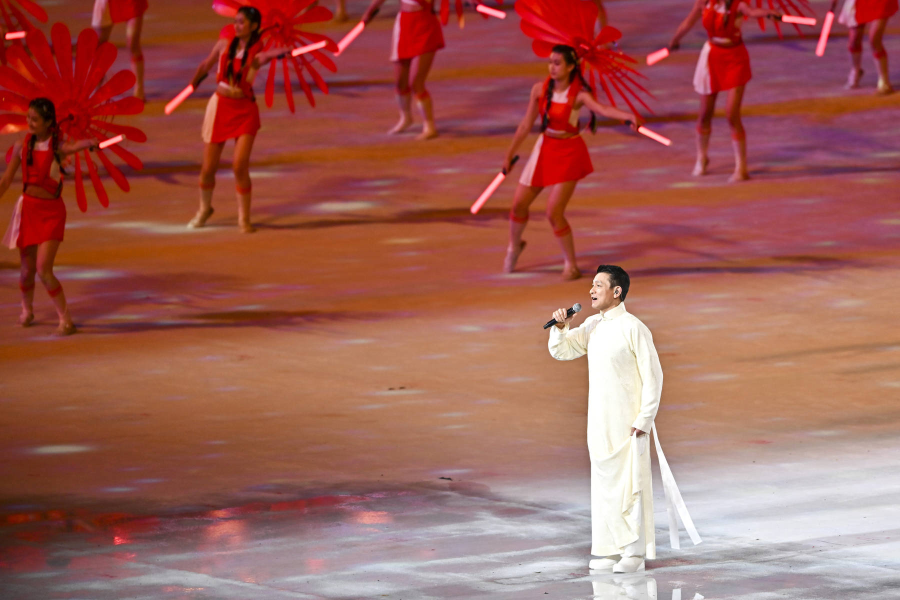 演唱收尾时,他深深鞠躬的 90 度身影与主火炬 “天海之冠” 的火焰交相辉映。这簇取自南海可燃冰的 “源火”,经粤港澳四城传递,由三地火炬手共同点燃,恰如《中国人》的歌词般,诠释着 “同心同圆” 的深意。当最后一个音符消散,体育场上空绽放的烟花拼成 “湾区同心” 字样,将开幕式的家国情怀推向极致。
