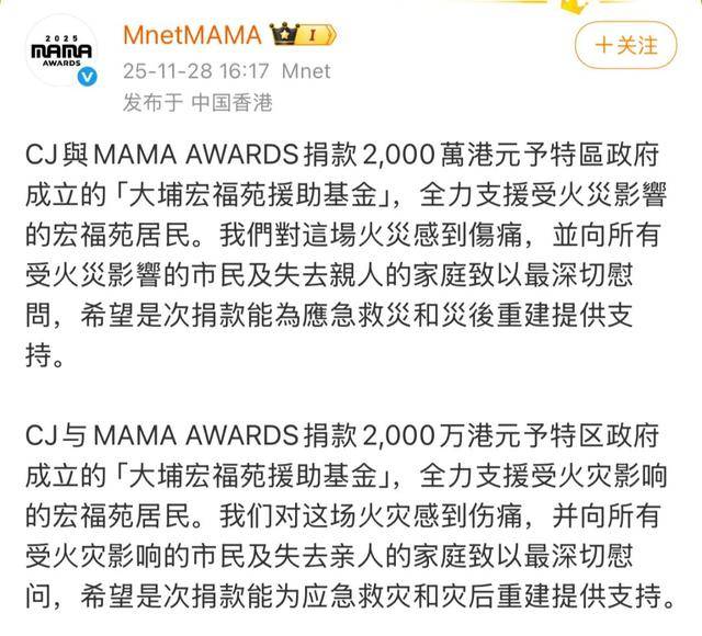 11月29日的香港红馆,本应是亚洲流行音乐的狂欢场。当70岁的周润发身着黑色西装登台,一头银发在追光灯下格外醒目,这场MAMA颁奖礼的基调从此改变。没有华丽辞藻,没有娱乐噱头,他用粤语、普通话、英语三次重复同一个沉重请求,让全场上万观众起立,为大埔宏福苑火灾遇难者默哀一分钟——这一分钟的寂静,远比所有掌声更震撼人心。