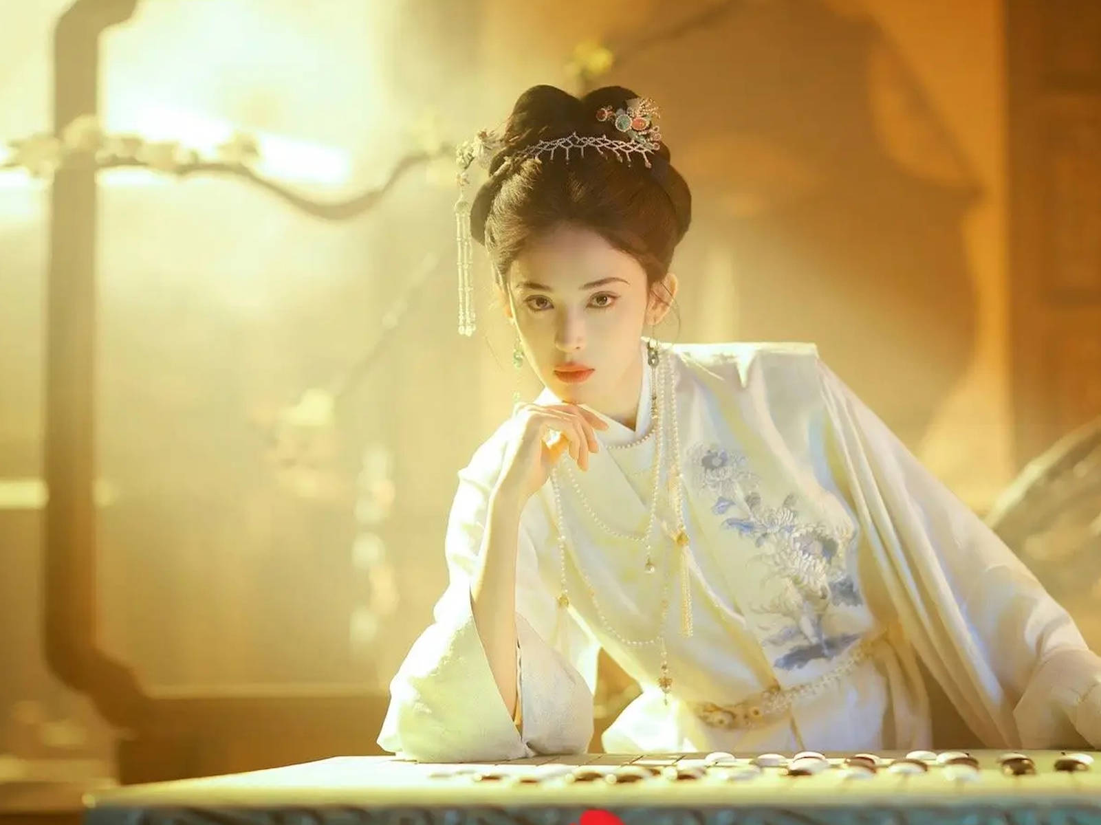 在室内拍摄的花絮中,娜扎身着一袭素色茶纹古装,简约的发髻未加过多繁复装饰,将她清冷温婉的气质衬托得恰到好处。她侧身而坐,单手轻托腮帮,目光深邃望向远方,仿佛正沉浸在角色的情绪之中。这一经典的托腮造型并非首次出现,早在之前的古装剧拍摄中,娜扎就曾有过类似造型,彼时更多的是少女的俏皮灵动,而此次则多了几分沉静与笃定,细腻地展现出角色的成长弧光。镜头下,她的侧脸线条优越,高挺的鼻梁与深邃的眼窝勾勒出精致轮廓,即便是无滤镜的片场生图,依旧抗打十足。
