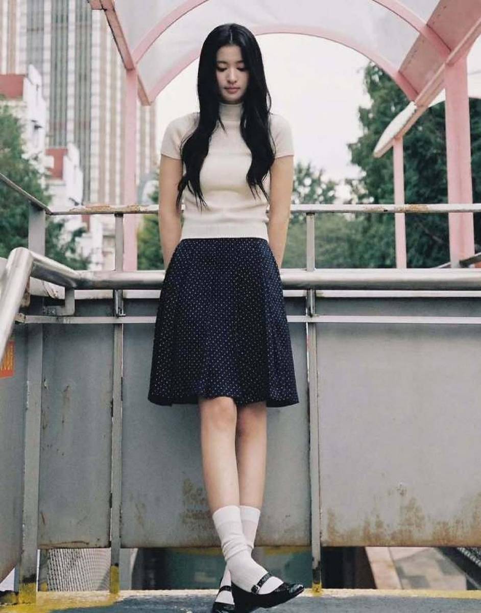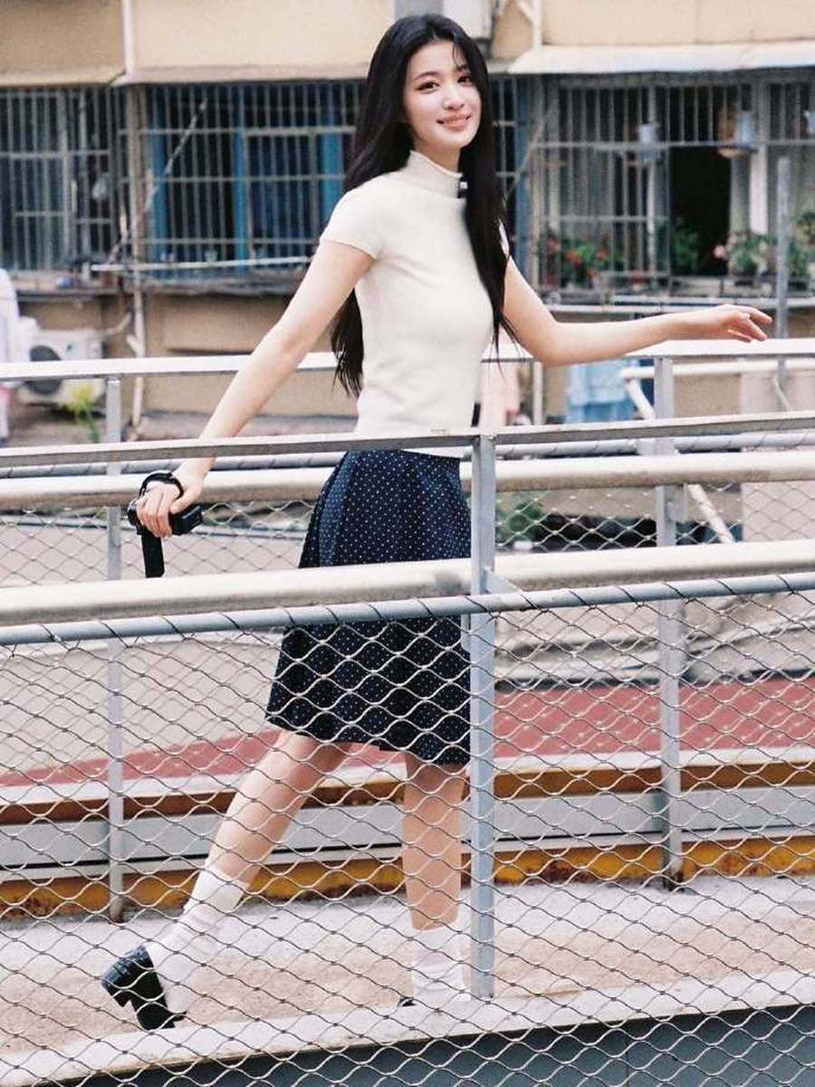 比起穿搭本身,更让人惊艳的是王楚然由内而外散发的强大气场。镜头下的她姿态舒展,肩颈线条流畅优越,下颌线清晰利落,举手投足间尽显从容大方。冷白皮在黑白配色的映衬下愈发透亮,与黑色短裙的酷飒形成巧妙碰撞,既有着少女的灵动鲜活,又兼具超模的冷艳大气。无论是正面抓拍还是侧身回眸,她都能精准掌控镜头节奏,每一个角度都抗打,生图状态下的肌肤状态和身材线条依旧完美,丝毫不输精修。
