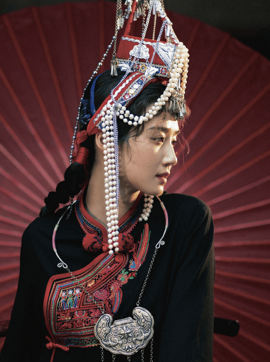 这组造型的成功,不仅在于卢昱晓的颜值与气质,更在于她让传统民族服饰走进了年轻群体的视野。在西式潮流盛行的当下,她以自身影响力为载体,用现代审美视角解读畲族服饰之美,让古老的凤凰装、织锦彩带不再是博物馆里的陈列品,而是可感知、可共鸣的时尚符号。当银饰轻响、彩带翻飞,卢昱晓用容色清丽的颜值与灵动松弛的神态,完成了文化与时尚的双向奔赴,既让畲族服饰的华美被更多人看见,也让传统文化在年轻一代的演绎中焕发新生。