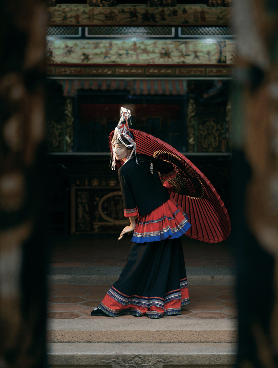 当福建畲族传统服饰的华美与现代淡颜系的清丽相遇,便有了卢昱晓这组惊艳全网的造型。她身着畲族标志性的“凤凰装”,容色皎洁如月下梨花,神态却兼具灵动俏皮与松弛自在,既让千年民族服饰的底蕴得以彰显,也赋予了传统美学全新的年轻态表达,成为传统文化“破圈”的绝佳范本。
