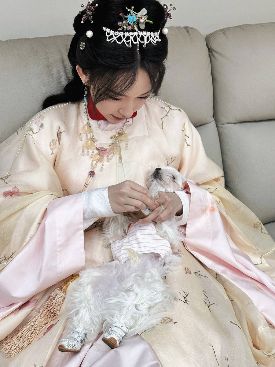 网友们纷纷留言感叹:“古装程潇真的自带建模脸滤镜”“抱狗的样子也太温柔了,氛围感绝了”“求这套古装的造型细节,美到失语”。也有粉丝猜测这组照片或许来自她的新剧片场,此前程潇在《玉茗茶骨》中的古装造型就因清冷仙气引发热议,此次华丽扮相再次让人对她的新角色充满期待。