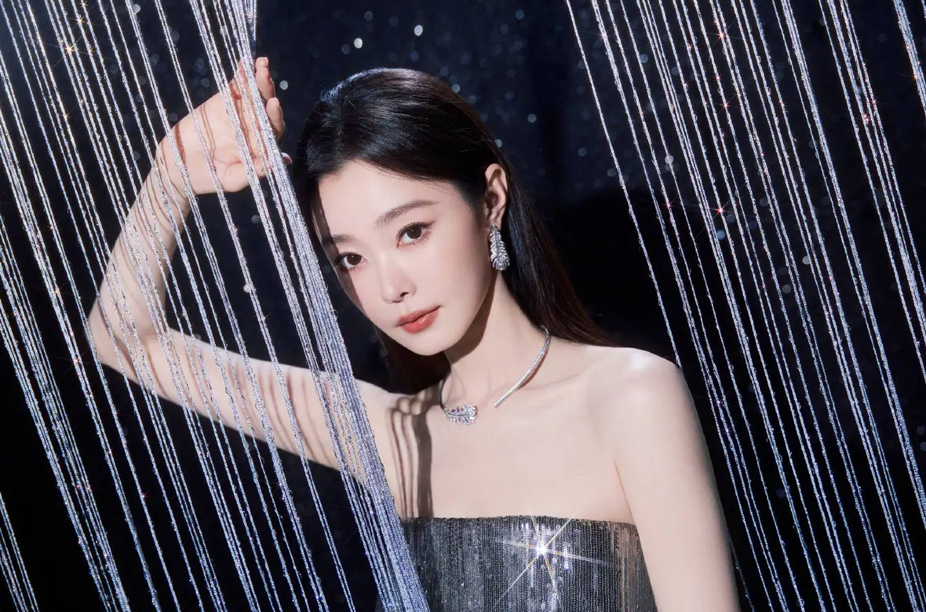 礼裙的设计堪称点睛之笔,抹胸版型大胆露出精致的肩颈线条与一字锁骨,将宋轶标志性的清冷骨相优势发挥到极致。裙身缀满的细碎亮片并非刻意堆砌,而是随着光线流转呈现出层次丰富的光泽,宛如将整片夜空的星辰编织于裙摆之上,走动间光影流动,既有礼服的华丽感,又无艳俗之气。腰部的收腰设计巧妙勾勒出纤细腰肢,搭配微展的裙摆弧度,既凸显了曼妙身姿,又为整体造型增添了几分端庄大气,完美契合她的气质调性。
