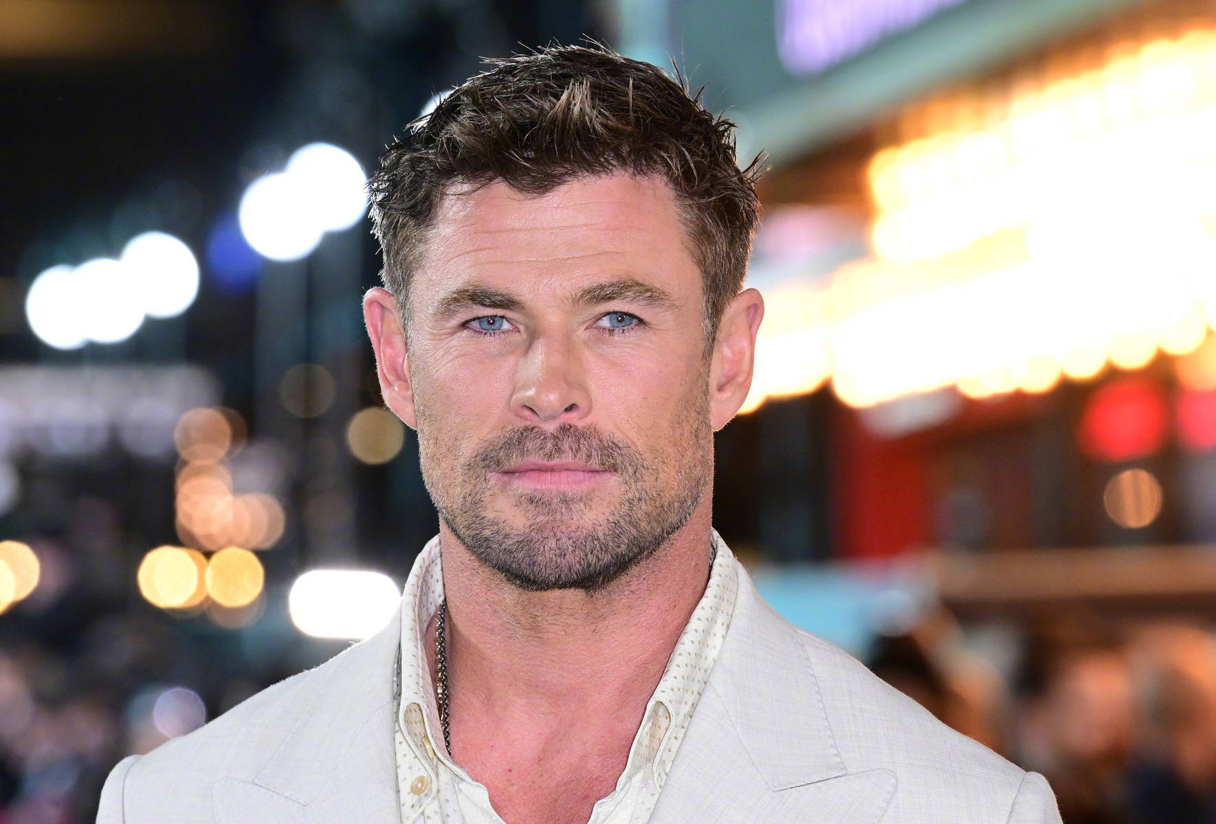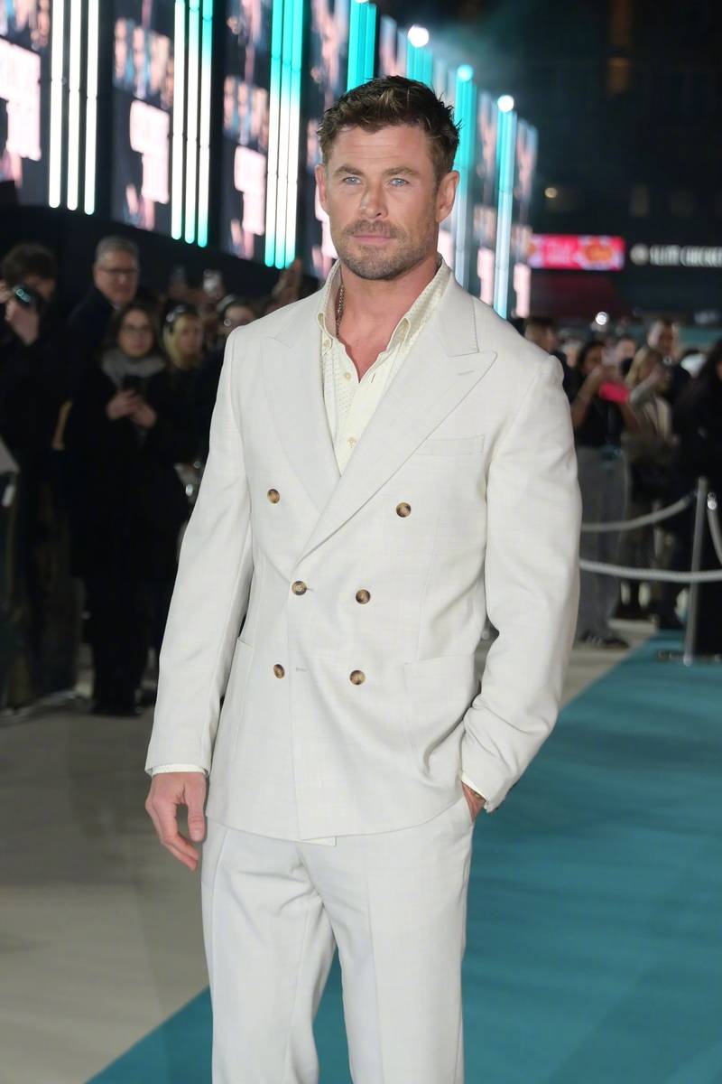 首映礼上,最引人瞩目的莫过于主演“锤哥”克里斯·海姆斯沃斯的亮相。他身着一袭剪裁得体的白色西装,内搭简约纯色内搭,没有多余的装饰,却将自身的优越身形展现得淋漓尽致。利落的线条勾勒出挺拔身姿,白色西装自带清爽高级感,搭配干练短发与标志性的迷人笑容,褪去了“雷神”的凌厉气场,多了几分儒雅帅气,又不失型男格调,一出场便收获全场尖叫,镜头瞬间被他牢牢锁定,帅气逼人难以抵挡。