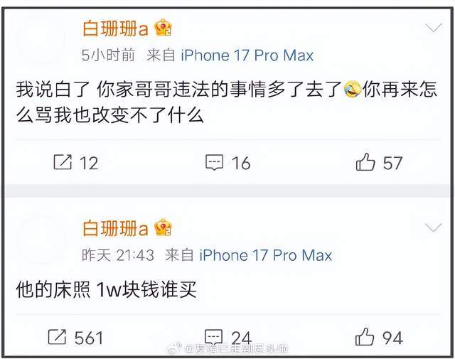 2026年开年娱乐圈第一波舆情风暴,由微博账号“白珊珊a”的一连串喊话引爆。1月18日晚,该账号突然发文直指顶流小生吴磊,以“吴磊你欠我的拿什么还”的激烈措辞暗示双方存在情感纠葛,不仅影射吴磊劈腿,更隐晦提及“违法的事多了”,搭配“1万元/张售卖床照”的噱头,瞬间让#吴磊 床照# #白珊珊 爆料#等词条冲上热搜,引发全网围观。