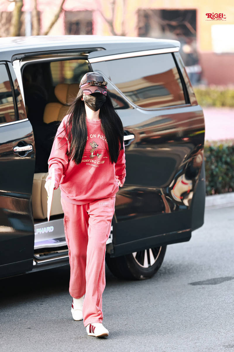 路透镜头中,虞书欣的红色卫衣套装简约而不失设计感,鲜艳的红色衬得她肤色白皙透亮,元气十足。宽松的卫衣版型休闲舒适,搭配同色系束脚运动裤,勾勒出轻快的身形,行走间尽显灵动俏皮。她扎着清爽的低马尾,额前碎发修饰脸型,妆容淡雅精致,面对镜头时露出标志性甜笑,偶尔与工作人员交流时点头微笑,亲和力拉满。休息间隙,她还不时整理服装、活动肢体,时刻保持最佳状态,展现出极强的敬业态度。