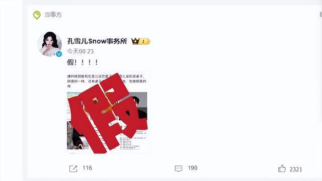 就在传闻快速发酵、即将席卷全网之际,双方工作室上演了“闪电辟谣”名场面。2月9日凌晨00:02,侯明昊工作室率先发声,只用一个加粗的“假‼️”字,干脆利落地否认所有恋情传闻,提醒公众勿信谣、不传谣;仅10分钟后,孔雪儿工作室紧随其后,连用四个感叹号强调“假!!!!”,直言传闻纯属造谣,双方无任何交集。