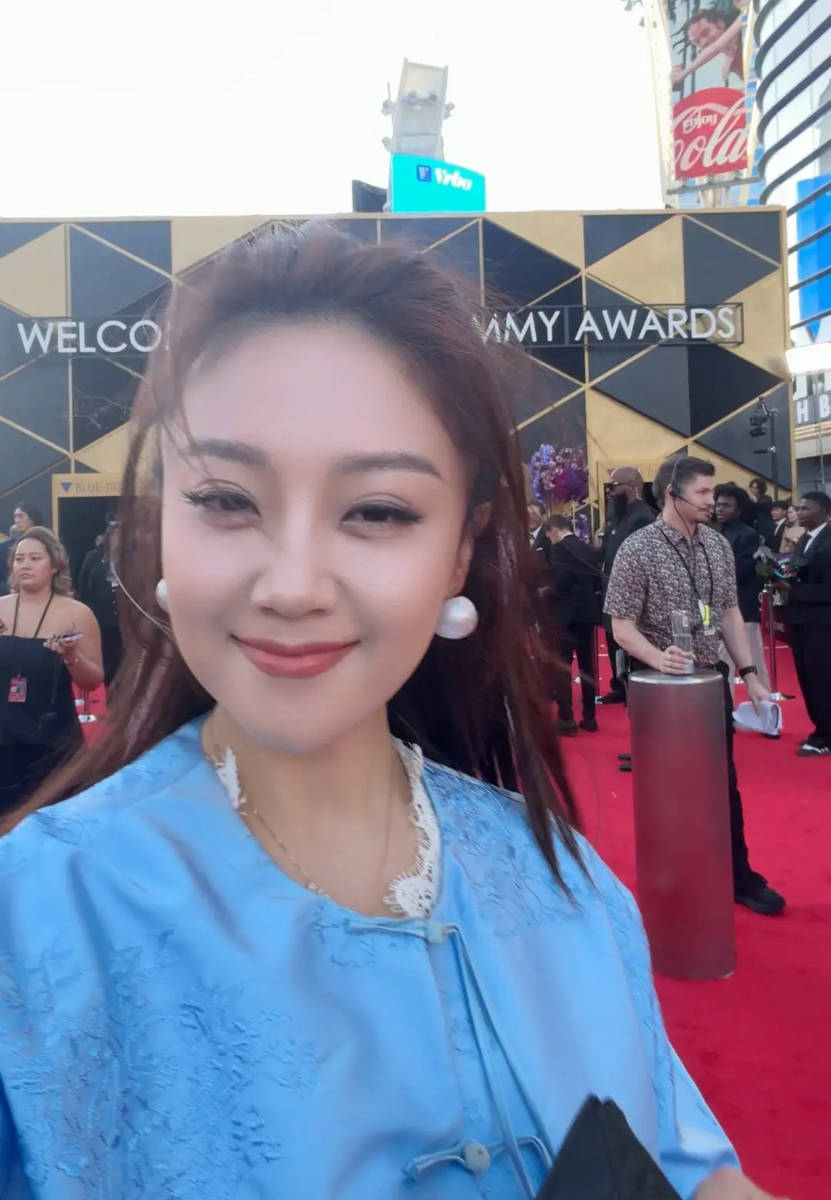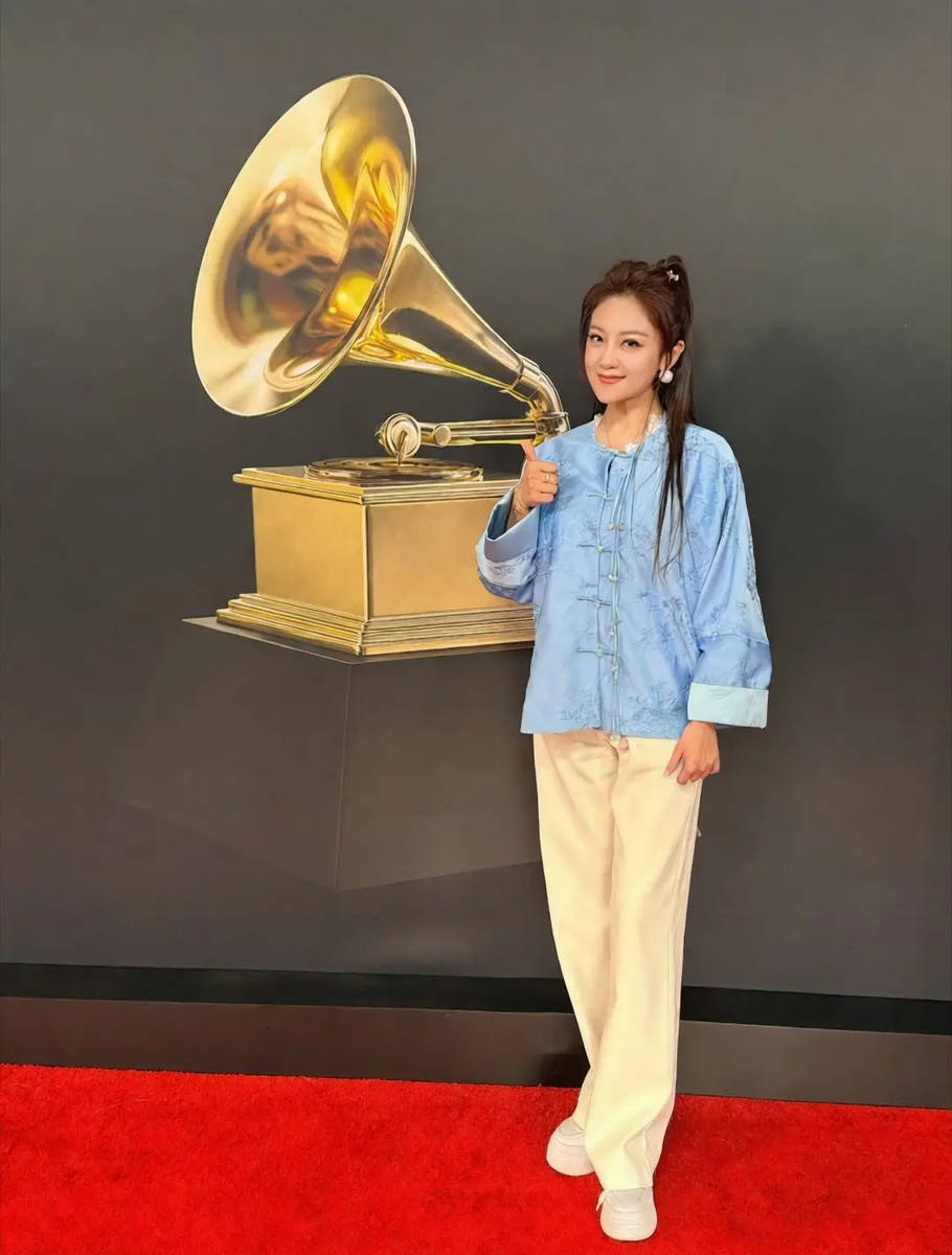 格莱美红毯惊现东方亮色!王小玮蓝白新中式造型清爽吸睛,用音乐传国风底气