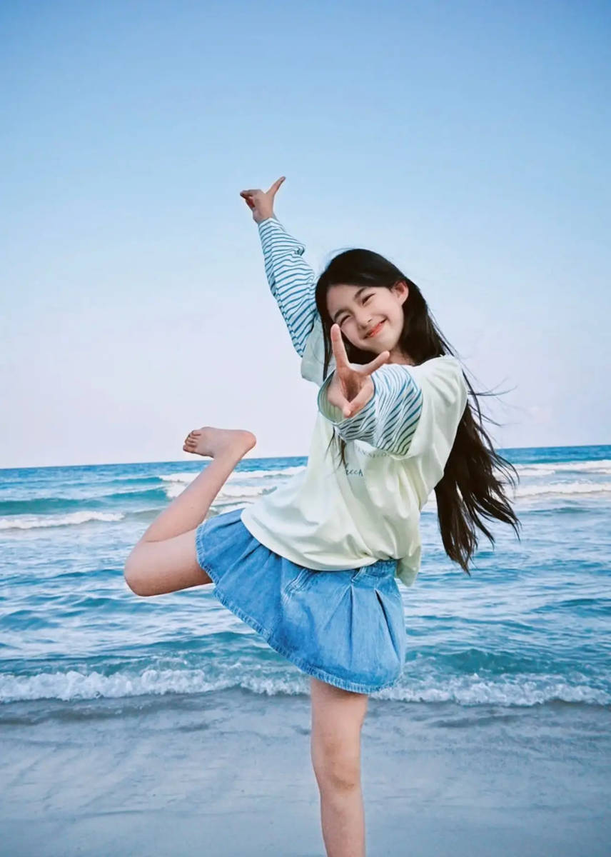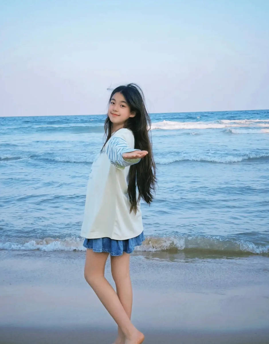 海边的风、湛蓝的天、灵动的少女,构成了一幅治愈感满满的画面。小泡芙在海边尽情享受童年时光,无拘无束的模样让人心生羡慕,黑发飘飘的青春模样,既保留了小时候的甜美底子,又多了几分少女的灵动与优雅。网友们纷纷在评论区送上祝福,希望小泡芙能够一直保持这份纯粹与快乐,在爱与自由中慢慢长大,继续做那个被时光偏爱的可爱女孩。