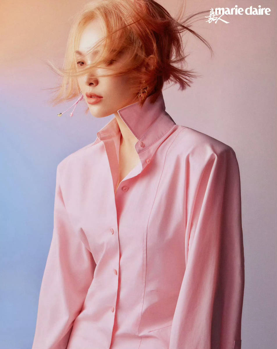 一直以来,唐嫣常被贴上“甜美”的标签,但这组造型却让我们看到了她的多面性。粉色衬衫赋予的温柔知性,与金发带来的飒爽气场,相互碰撞又完美融合,打破了“粉色只能甜妹”“衬衫只能通勤”的刻板魔咒。她站在镜头前,眼神舒展笃定,没有刻意讨好的笑意,却自带光芒,既有成熟女性的从容优雅,又有不被定义的飒爽姿态,将时尚与个人气质完美结合。