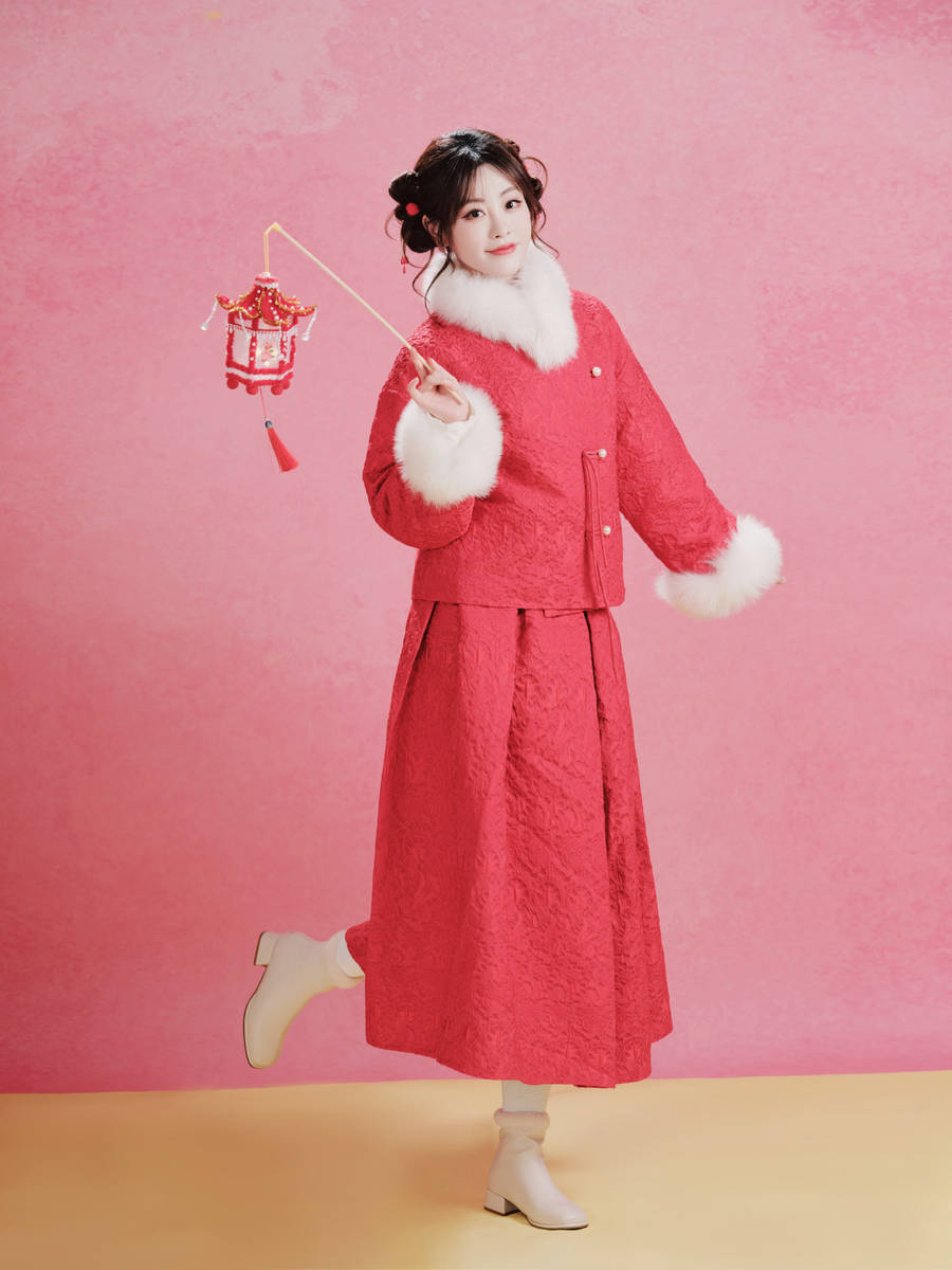 祝绪丹的眉眼自带灵气,柳叶眉纤细柔和,眼眸清澈明亮,笑起来时眼尾微微上扬,露出浅浅的梨涡,温柔中带着几分俏皮。灯光下,她的肌肤细腻通透,透着自然的红晕,与手中红灯笼的红火相互映衬,更添几分新春的暖意。无论是低头凝视灯笼的温柔模样,还是抬眸浅笑的灵动瞬间,都极具感染力,仿佛能将这份新春的喜悦传递给每一个看到的人。