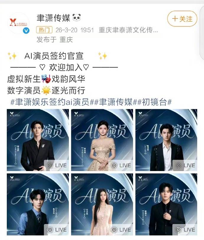 2026年3月20日,新锐影视经纪公司聿潇传媒发布重磅官宣,一口气签约六位AI演员,其中千万级网红韩安冉的名字赫然在列,瞬间引爆全网热议,也让“真人签约AI演员”这一新鲜模式,走进大众视野。不同于传统艺人签约,此次韩安冉是以真人数字分身的形式,正式入局AI演艺赛道,成为网红跨界AI演艺的典型案例。