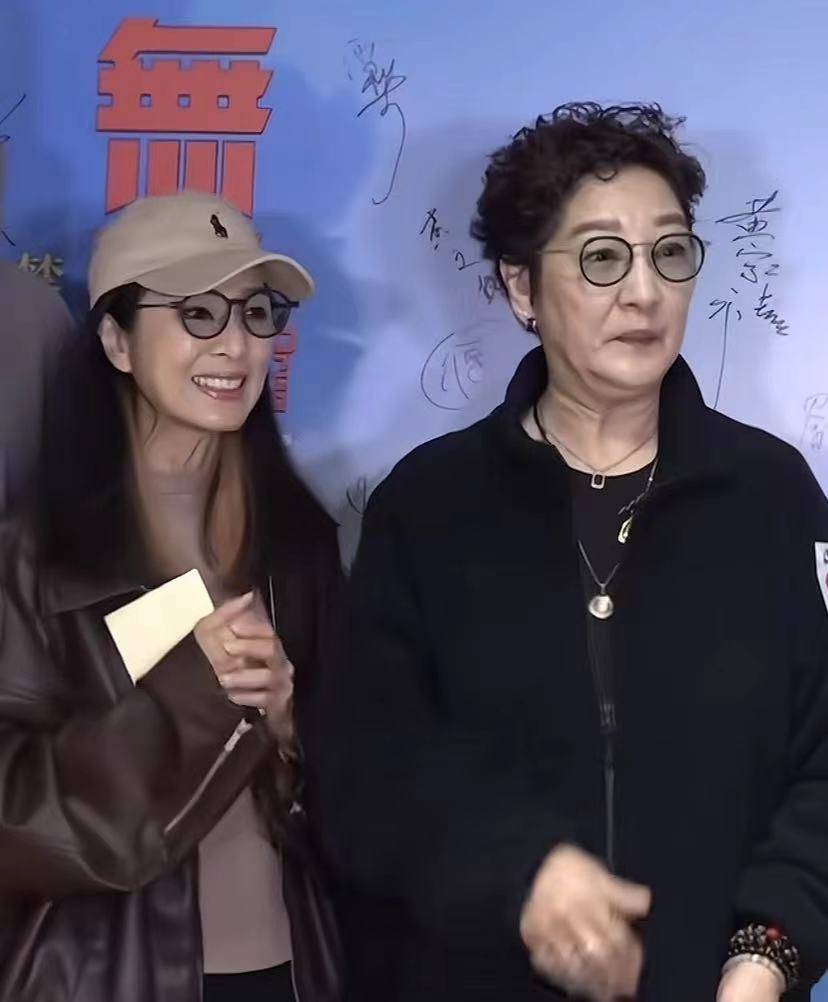 反观身旁60岁的雪梨,状态则反差明显。她身着一身深灰宽松针织衫与阔腿长裤,试图用宽松服饰修饰身形,却依旧难掩肩背的宽厚与腹部的隆起。短卷发略显毛躁地贴在头皮上,面部皮肤松弛下垂,法令纹明显,眼下卧蚕塌陷,眼神也褪去了往日的灵动,整个人透着几分憔悴与老态。很难想象,这位略显沧桑的女士,曾是荧幕上惊艳众人的“最美李莫愁”,也曾有着不输姐姐的明艳颜值。